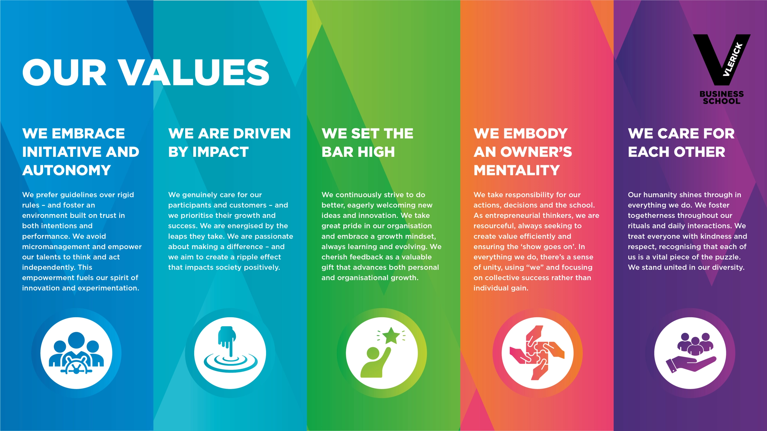 Vlerick Business School is an innovative, top-ranked and sustainable international business school in the heart of Europe. Our purpose is to transform people for a better world! We want being at Vlerick to be a transformative experience where you discover the knowledge, mindset and confidence you need to take your next leap – and become the entrepreneurial leader our world needs.